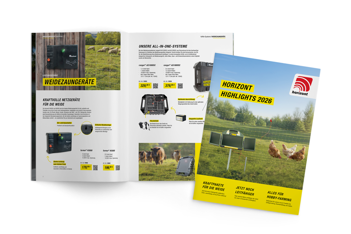 Im Weidezaunkapitel von horizont finden Sie zahlreiche neue Produkte und Innovationen „Made by horizont“.