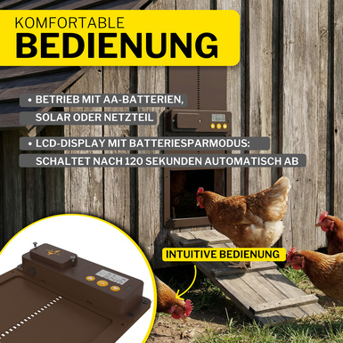 Für Sie als Geflügelbesitzer bedeutet diese praktische Hühnertür eine deutliche Zeitersparnis.