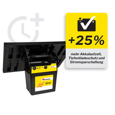 Der integrierte Tiefentladeschutz schützt den Akku zuverlässig vor Schäden, während die intelligente Stromsparschaltung den Energieverbrauch automatisch der Zaunlast anpasst – für höchste Effizienz und maximale Betriebssicherheit.