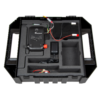 Das Koffersystem bietet Platz für Zubehör, darunter ein optionales 230 V Netzteil, mit dem das Gerät auch am Stromnetz betrieben werden kann. Zudem kann ein zweiter Akku im Koffer ergänzt werden, mit dem Sie die Laufzeit Ihres Gerätes verdoppeln können.