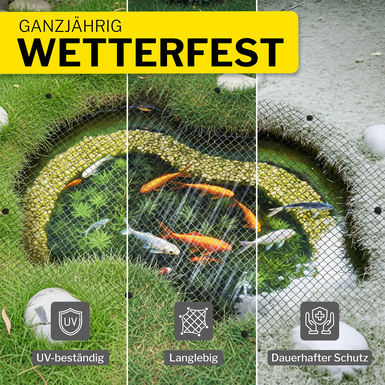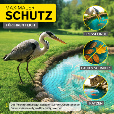 - Effektiver Teichschutz: Schützt Gartenteiche zuverlässig vor Reihern, Katzen und anderen Fressfeinden.