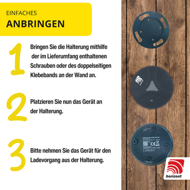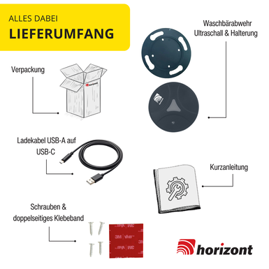 Schützen Sie Ihr Zuhause zuverlässig vor Waschbären! Die horizont Waschbärabwehr arbeitet mit hochwirksamen Ultraschalltönen. Dank integriertem Lichtsensor ist das Gerät nur bei Dunkelheit aktiv – tagsüber werde keine Töne abgegeben, der Akku wird geschont und gleichzeitig wird niemand durch Ultraschalltöne gestört. Tierfreundlich, effektiv und ohne Chemie – die ideale Lösung für Dachboden, Garten und besonders Mülltonnen.
