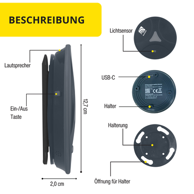 - Intelligenter Lichtsensor – aktiviert das Gerät nur bei Dunkelheit (< 4 Lux) und spart so Energie