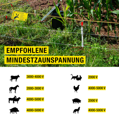 Die abschreckende Wirkung bei Wildzäunen ist ein zusätzliches Plus für das horizont Funktionskontrollgerät. Das Messgerät benötigt keinen Erdungsanschluss (wird in das vorhandene Zaunmaterial eingehängt und durch das elektrifizierte Leitermaterial betrieben).