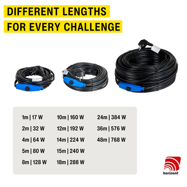 All in all, the frost protection heating cable from horizont impresses with its technical expertise and simplicity and should be your first anti-frost measure. Reliable and completely independent, it keeps your water pipes free from frost.