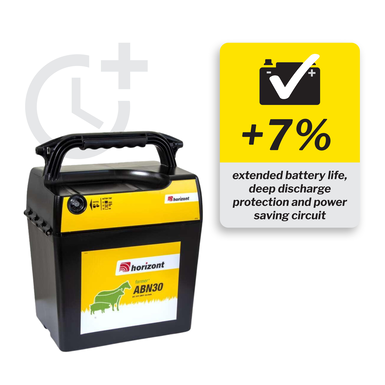 The horizont farmer® ABN30 is the ideal solution for farmers and hobby animal owners who value flexibility, energy efficiency, and a particularly robust design. Compact, powerful, and technically sophisticated—this energiser offers everything you need for safe and reliable pasture operation.
