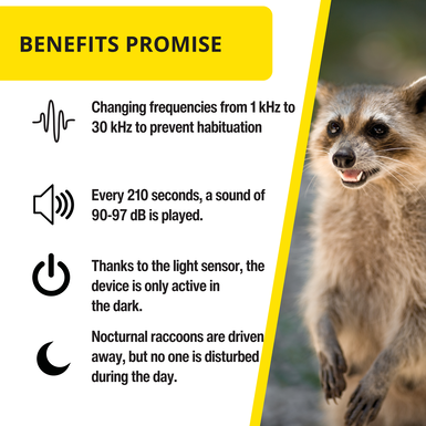 ✅ Animal-friendly, effective and easy to use - with the horizont ultrasonic raccoon repellent, you can permanently repel annoying raccoons from your environment!
