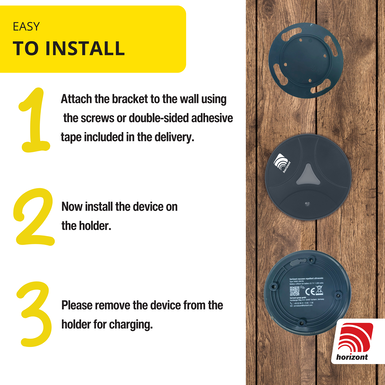 The repellent device is powered by a lithium-ion battery (3.7 V, 1,500 mAh). The light sensor automatically activates the device in the dark (below 4 LUX). A full battery charge lasts for up to 40 days. Thanks to the mounting plate , which can be attached with either screws or adhesive tape, the device can be easily removed and attached to charge the battery. This can be conveniently recharged via a USB-C connection and a suitable cable is included in the scope of delivery. The integrated LED lights up red when the battery needs to be charged.