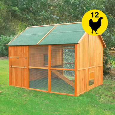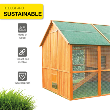 Species-appropriate chicken keeping means plenty of space, protection and comfort. The Norway chicken coop offers all of this - perfect for 10 to 12 chickens. Its well thought-out design with integrated aviary, weatherproof shelter and practical accessories make it the ideal home for your animals.