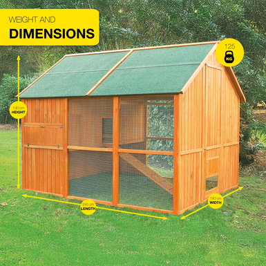 โ Integrated aviary: Securely fenced outdoor area for daily free range