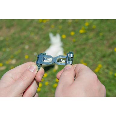 Each of our nets comes with a comprehensive service set. This contains 4x double-sided pegs, 4x guy lines, 13x ground pegs, 2x head insulators, 2x ground stoppers, 5x brass clips and 1x horizontal warning sign, 1x replacement wire black, non-conductive and 1x replacement wire in net colour, conductive.
